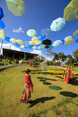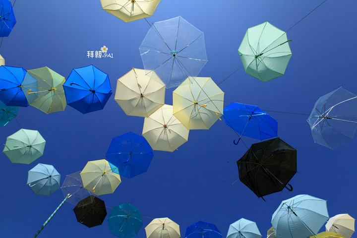 整个草莓园最吸引我的场景莫过于头顶的这些伞,蓝天下丝毫不突兀的配色。