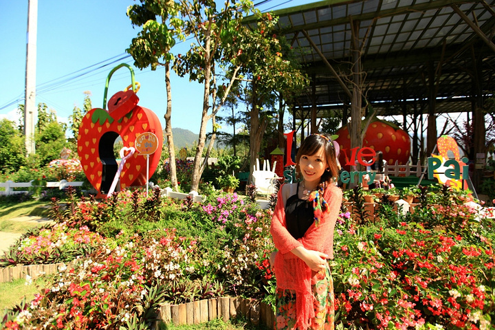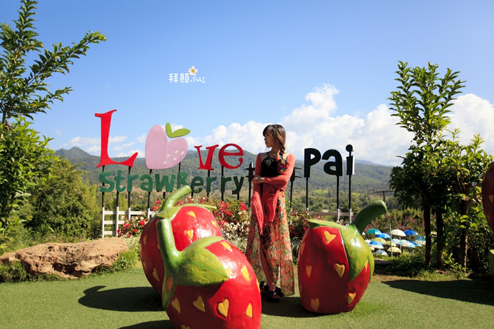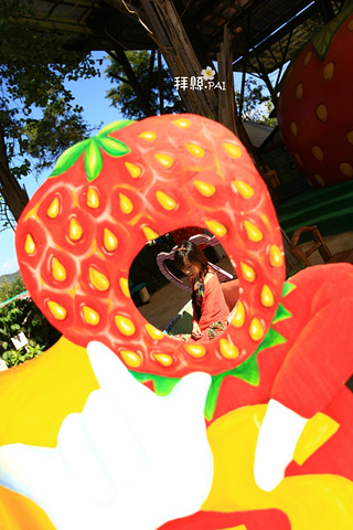 经典的Strawberry love pai,每个来草莓园的人一定会拍照的场景。