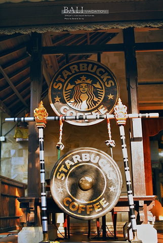 大胖小胖正坐在非常具有乌布特色的星巴克喝着咖啡晒着太阳