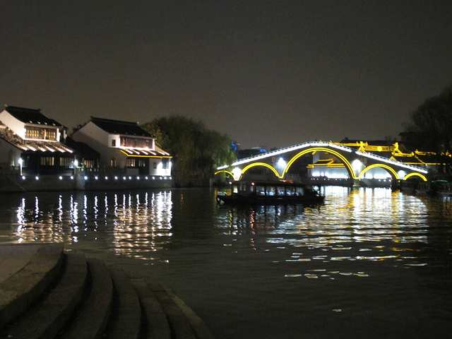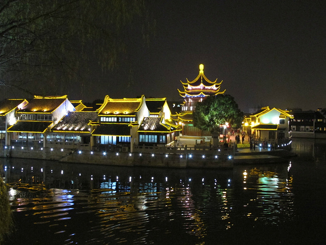 3、行程:虎丘-七里山塘。(其实虎丘出来旁边就是七里山塘街,所以我们当天把整个七里山塘走完了,花了一个半多小时,边走边拍,山塘街的夜景很漂亮。)