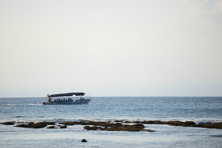 在我走过去之前,以身试“水”的摄影师kevin赤脚走过去探探路,要知道,海滩上坑坑洼洼的都是珊瑚,回来的时候kevin表示脚已挂!!!~