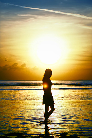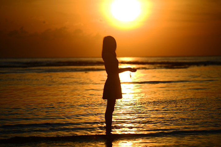 (太阳缓缓下落,慢慢的,消失在海平面)