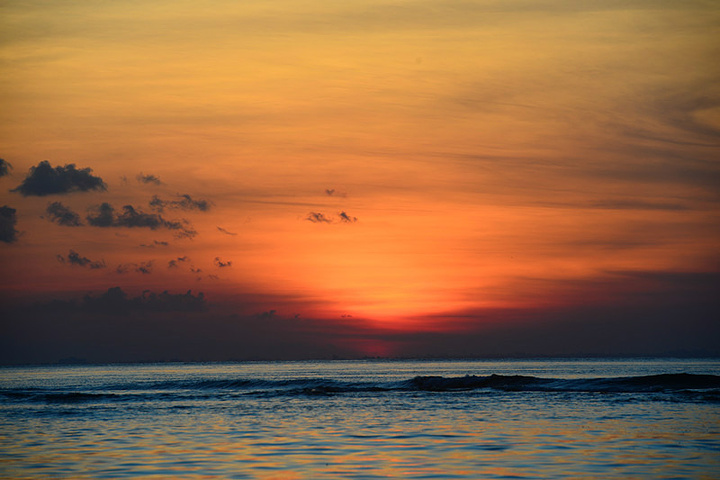 我们找到一家蘑菇海滩旁边的餐厅,这里可以清晰地看到整个日落过程,没有密密麻麻的人,也没有喧闹的声音,只有海浪冲击沙滩的响声。我们在蓝梦岛待了三天,在蘑菇海滩看了三天日落~每次都点完一份简餐,然后喝着鲜榨西瓜汁吹着海风,等太阳从海平面上消失。