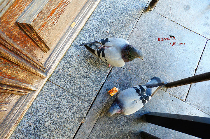 午餐时间转眼即到... 不争气地肚子饿了! 罗先生总是先问我你要吃什么?然后我每天重复地问: 有什么? 然后他再耐心地给我讲解菜单... 日复一日... 哈哈要乐于和大自然分享... 所以我把我的午餐和小鸽子分享了...来自游记西班牙自助游全攻略