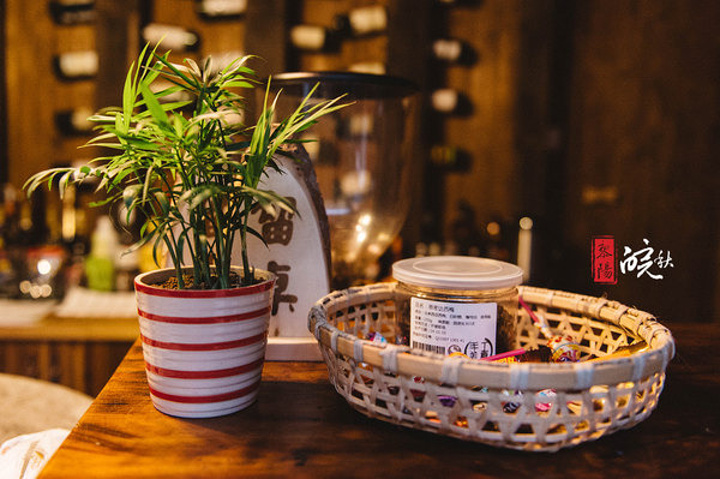 简单的绿色盆栽和篮子里的小糖果真是老板体贴的表现呢