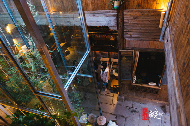 由于是老宅改建,为了保证采光,老板在天井打造了一处玻璃房