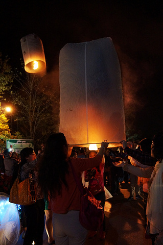吃完晚饭,来到一个小广场,这里基本上是放天灯的地方,清迈的天灯节是非常有名的,不过我们这个时候不是时候,只有一些游客在放天灯,所以数量很少咯。不过放一盏天灯,祈福祈愿世界和平。哈哈我们的天灯飞啦~来自游记【漫游泰北】暹罗之恋--清迈小城故事