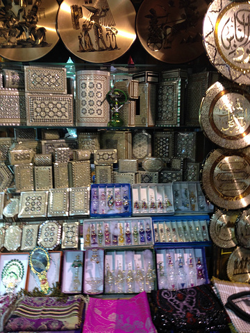石块铺成的地面古旧而洁净,走在狭窄的小巷子里,只见大大小小的店铺一个接一个排列在纵横交错的街巷两旁,充溢着浓郁的伊斯兰风格。有团友购买了纸莎草画(效果似印刷,当然价格便宜)。也有团友购买了香精20埃镑/30ml。在同一家店,我买了15ml香精(Lotus),花了5埃镑外加1盒清凉油。