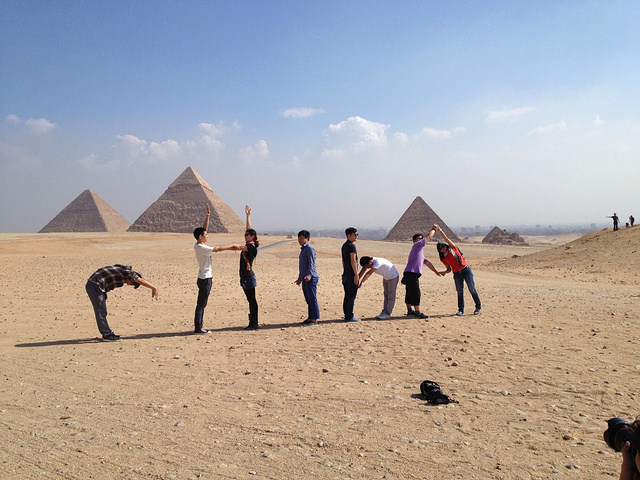 金字塔前,团友在摆造型。
