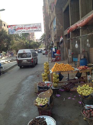 晚餐后(中餐馆),回到酒店。大巴车上,在导游的推荐下,说是从厂家订购,购买了5盒埃及特产——椰枣(100埃镑/5盒)。花费15美元。回到酒店之后,有几个团友要外出寻找超市,或许是靠近景区的缘故,黑漆漆的夜晚,暗淡的路灯。出门不远遇到丁字路口就不知往哪走,只得问路,后来才知说的是加油站便利店。此时,遇到一埃及小伙子,将一行人领过马路,再拐入小路不远,来到一似小区的个体小超市,走时,要求支付5美元带路费,只得付5埃镑了事。出来后,朝另一方向前行500米左右,来到貌似小集市的地方,有不少店面,马路上也有不少摊贩。集体过马路,买些水果然后返回酒店。