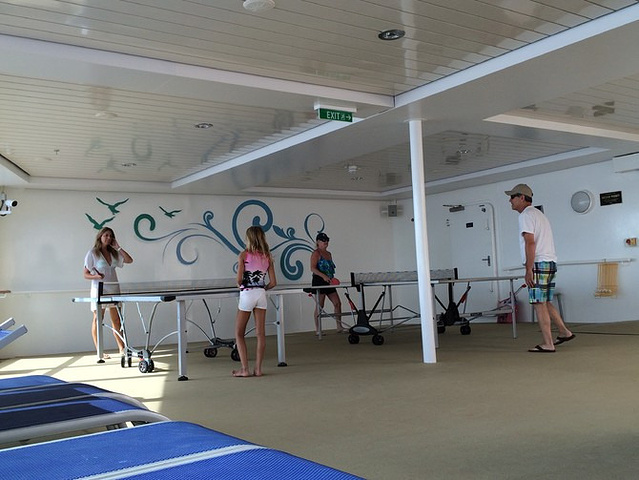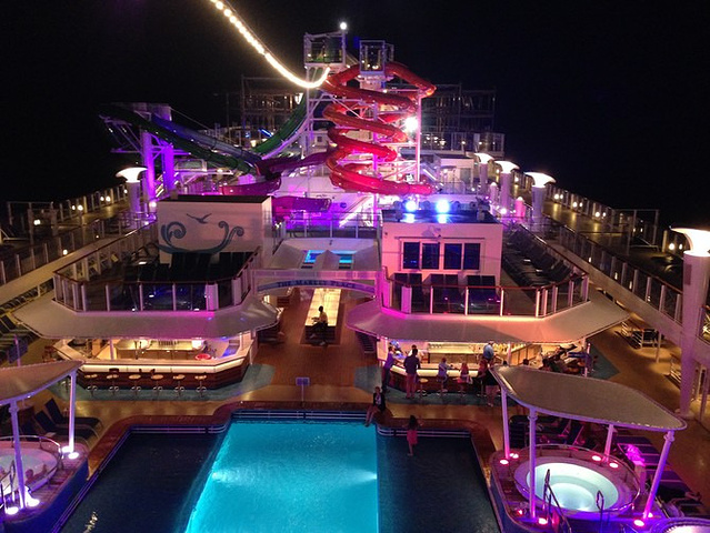 这一层大多数主要就是GARDEN CAFE和游泳池,游泳池不大,是海水的,一直有各种活动,PARTY啊选美大赛啊,大家也乐意去随便扭一扭。有一个儿童的戏水区域,有很多的卡通人物。