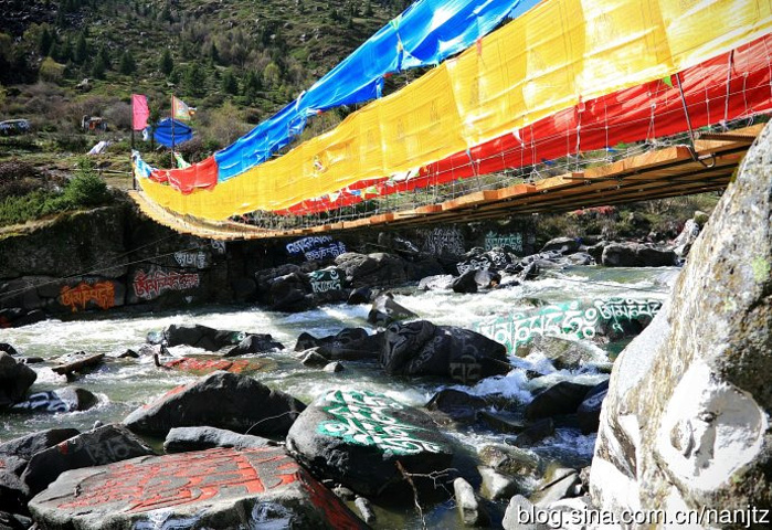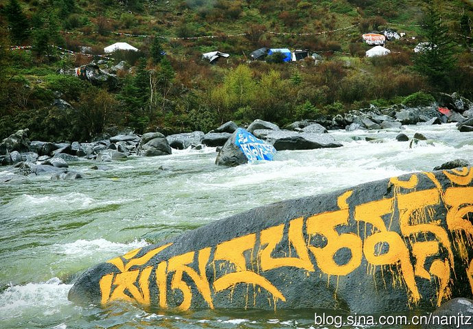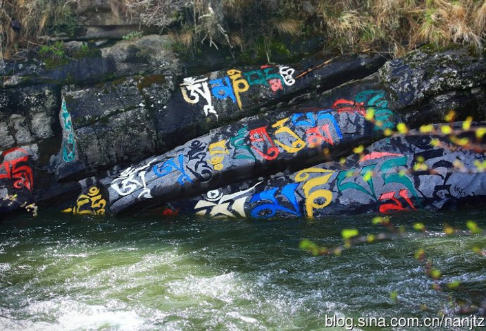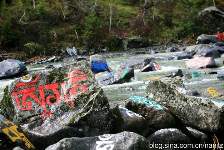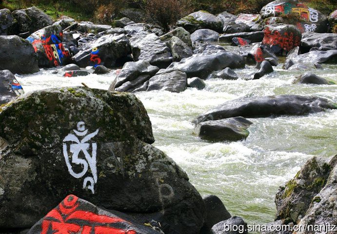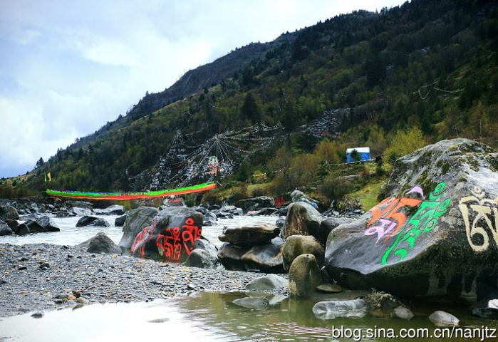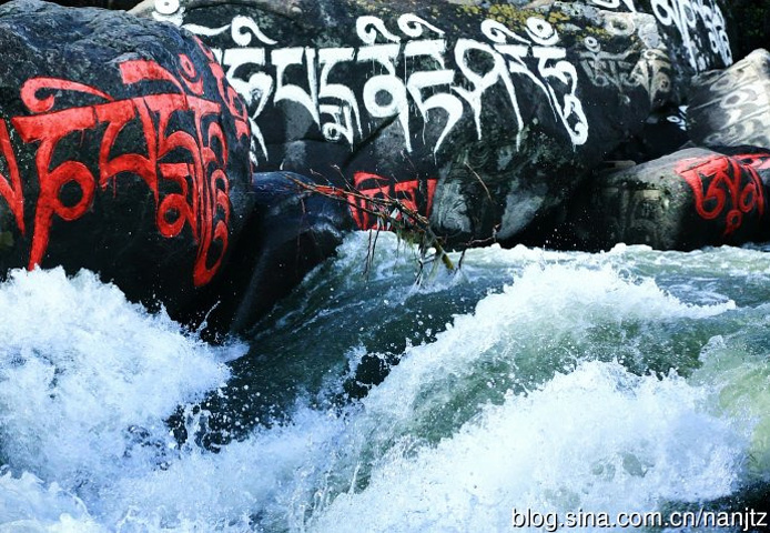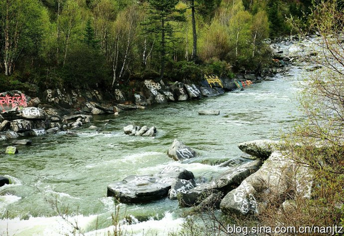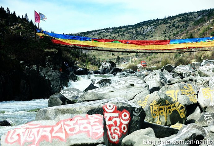 在川西新都桥往塔公方向的215省道旁,雅拉雪山消融的雪水汇流成河,向南奔流,河谷沿岸经幡诵念,河中布满了色彩斑斓的尼玛石刻,延绵十多公里,蔚为壮观。神山圣水,佛秘经咒,让这片朝圣的藏地充满了神奇的魅力。