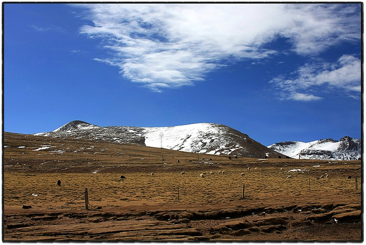 继续向前,便是藏北草原。天苍苍,野茫茫,用来形容这里的景象,是再适合不过了。略有可惜的是,草未长高,所以称不上是风吹草低见牛羊。