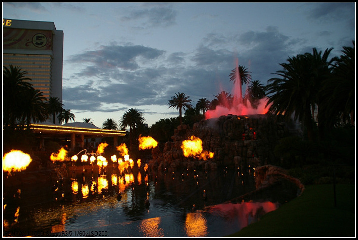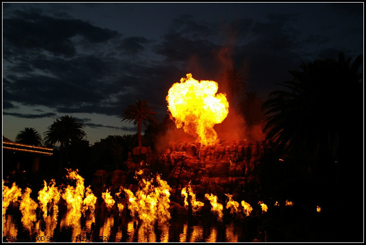 火山喷发秀也是游人争相观看的项目,7点开始到11点,每小时都有一次。时长只有5分钟,所以看的人也不多,看完往前走发现金银岛那人山人海来着,果然海盗女是比火山吃香的哦。