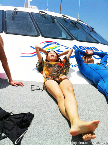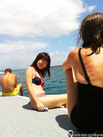 午饭过后,船再次开动,所有人都跑到了2层的露天夹板上晒太阳,船开的超级快,因为风也特别的大,所以大家都看着前方的大海,每一次大的颠簸都像一下过山车,大家就一起尖叫一下,乐此不疲。我们也适应了这种环境,不再晕船。