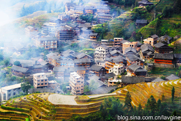 很惭愧,12年的行程2年后才开始写,主要是龙脊梯田最好是灌水期期间去比较壮观,当时我们11月恰巧路过,但是已是收割完毕的季节,几个地方还点上了火去烧,当时看着杂乱不堪,此景点就渐渐被遗忘;但偶然的时间翻开电脑相册,翻阅着一张张照片,一派金黄的梯田还夹杂些许绿色,烟雾升起与远处的房子融为一体,好一派浓郁的秋收气息,这场景不是比旺季的梯田景色更接地气吗?看着一张张照片,仿佛二次游走在这妩媚的曲线世界里,于是我决定有必要再纪录下此次的行程;