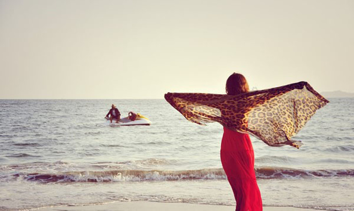 三亚湾的黄昏还是很美的,有长长的海岸线,细细的白沙和成排的椰子树。对于从小就生活在没有海的京城的我,不论走到哪里,只要看见大海就会一下变得特欢实,穿上了临行前在淘宝上淘的海边度假大红裙,我开始在海边手舞足蹈,P先生则十分敬业地拿着相机咔咔咔地给我拍照,他的理论就是,“多拍总有一两张好的。只照一张,照不好就挨批~”理论不错,哈哈哈。