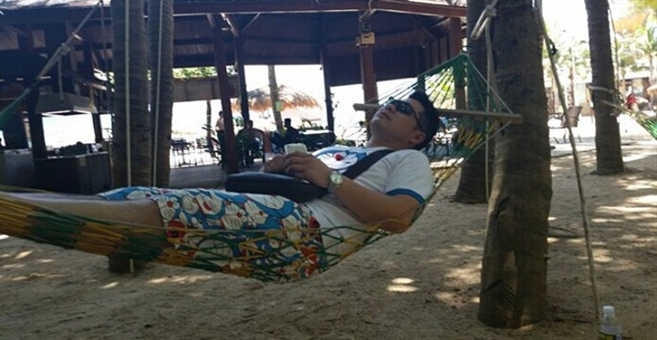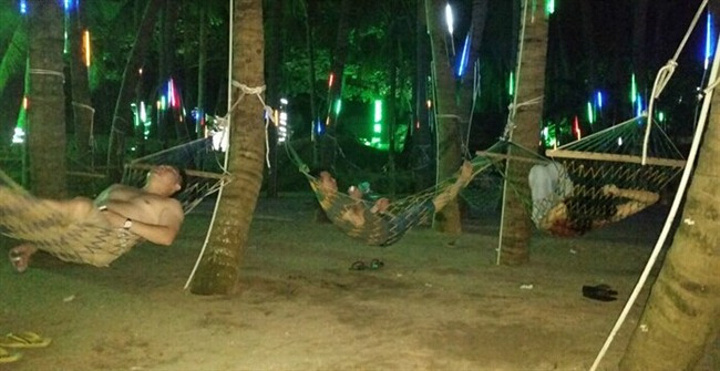 到超市买了点啤酒和小吃,准备回房间和亲家边看球边喝酒。路过中午的吊床,正好晚上没人收费了,果断过去躺上大半个小时,海风吹着、吊床摇着,周围也很安静,只有海浪拍打沙滩的声音,特别舒服。