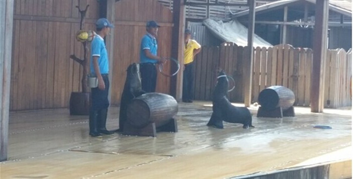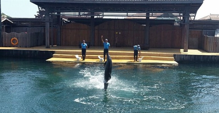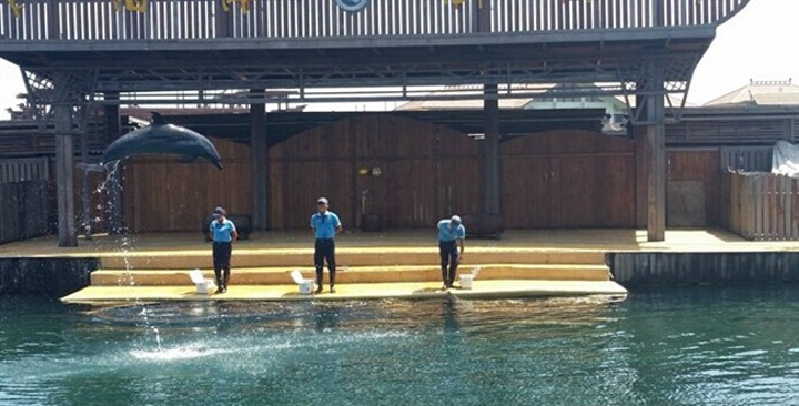 没休息多久,就有人过来说要收费,20块每位。我说我们是在岛上住的,她说也不行,必须给钱。 一看时间,差不多快到海豚表演了,就不睡了。直接去看表演了,这个也是住宿送的项目。