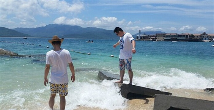 吃完饭,顶着大太阳,中午在海边玩,居然也不会觉得热,有海水、有海风,还是挺舒服的。当然防晒霜是必须的。