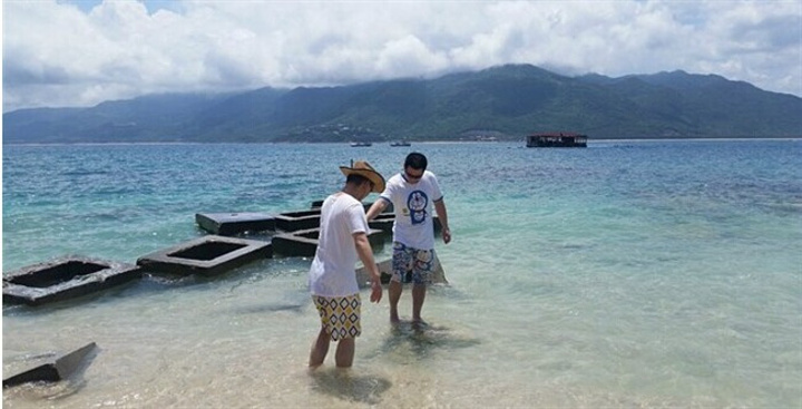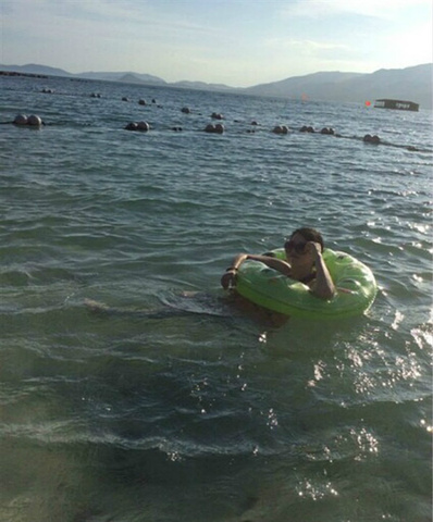 游泳没拍什么照片,我和媳妇、亲家母下海游泳了,口味哥不肯下,在躺椅上休息 这里说一下,分界洲游泳并不是很舒服,第一,它的浴场不大,走到最远处,水还是只到肚子这里(本人173)。第二,它的水底并不是沙子,而是礁石,所以脚踩着不舒服,甚至有时候会踩痛。所以去了要游泳的朋友要有心理准备。