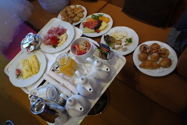套餐里面包括了婚礼第二天早上的DELUXE早餐,但是我们是航海日举行婚礼,第二天一大早就要下船玩突尼斯,所以JESSICA建议我们把早餐改成婚礼当天的。分量大的吓人。。。来自游记地中海游轮“辉煌号”婚礼仪式纪实
