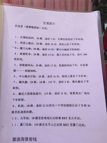 我这四晚选择了民宿,因为我的行李箱不太好拿着东奔西跑,所以我决定四个晚上都住在一家客栈,客栈环境干净整洁,大方,我们住在7楼可以出门走到阳台上,就可以看到海,就是前台在一楼,但是来回有电梯,还是很OK的!厦门厦逸海景客栈,老板人超好,到站后,会出门来接我们,好热情啊。而且前台还有一个周围景点的介绍,好贴心!