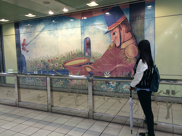 吃完了,闺蜜就陪我完成我的心愿~来到了南港站(几米)就是满满的几米画像!由于个人非常喜欢几米的画.