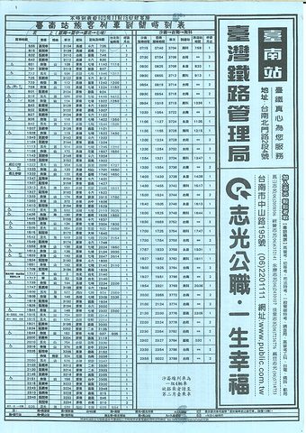 这是台南开往其他地方的火车时刻表,由于我们定好了2天后(周日)前往台北,所以必须提前买票,因为周日上班一族也会赶着北上去上班嘛~
