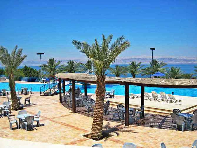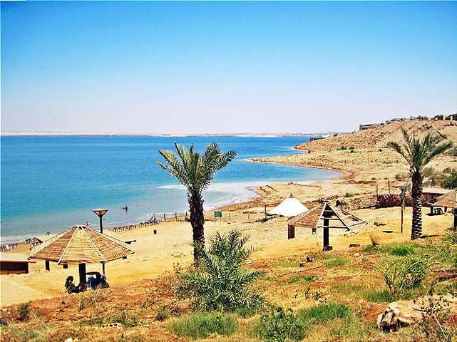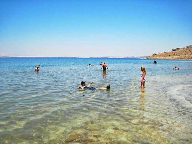 开车大概40多分钟,到了Amman beach附近,我的旅伴什么功课也不做,但仍然知道约旦有死海,可见其知名度,老实讲,死海在我的想像里是很丑的,也许是因为这倒霉的名字吧,所以当我们穿过荒芜的土丘和沙漠,来到那一湾碧蓝而澄明,烟波浩渺的水面之前的时候,我还在怀疑,这真的是死海么?这里很多国际连锁酒店,如希尔顿,holliday inn,movenpick,等等,也有约旦本国的高档酒店,都是resort,各自有一段死海海滩,有人玩得休闲,可以在这里住上一两天