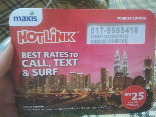 结果导致我就用了两天 打了4个电话 没钱了 到底什么情况也不知道 所以只能靠着酒店的免费WIFI上网了 后来在瓜拉丁加奴买了HOTLINK卡25马币 这个打电话是真的便宜 一分钟才4CENT 就是4分钱啊 还有100MB的流量 就是这个卡 这个9天足够用了 所以别像我那样 就一次到位得了