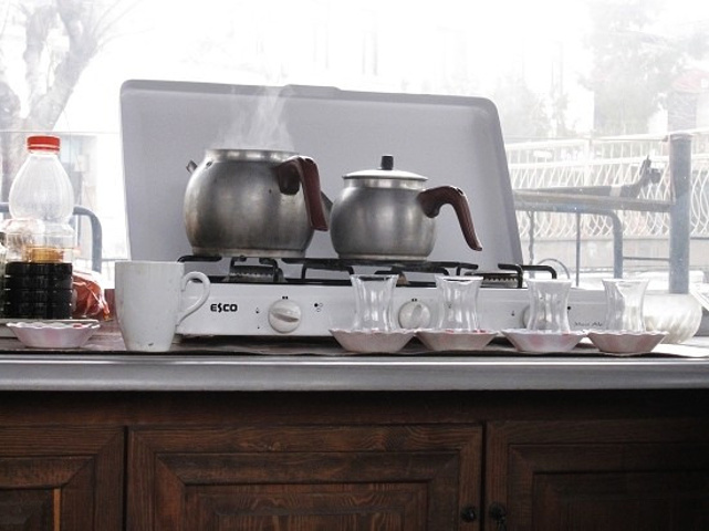 看了大叔给我们煮茶,才知道原来土耳其的两件套,一壶煮的是热水,一壶是浓茶,两者相掺,才是我们最后喝到的土耳其茶~