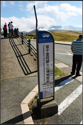 临时停靠的站台。就在路边。上面是博物馆,下面是草千里