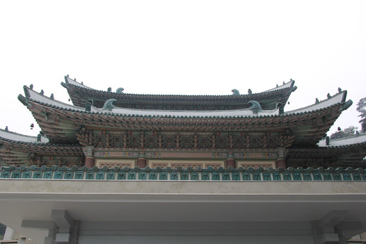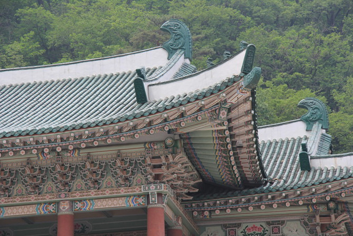 妙香山是朝鲜知名风景区,景色优美,有三条上山的道路,大量瀑布,此地产金矿,但伟大领袖说,不能为了开采金矿而破坏这里的美景,于是,就没有开采。但也许是由于国籍,也许是时间太紧张,实际上我们往来奔波六七个小时,只看了两个点:国际友谊展览馆和普贤寺。在旅游界看来,这样的安排堪称灾难,但从这种奇怪的安排本身,即可以窥见朝鲜目前政治挂帅、死要面子的状况。
