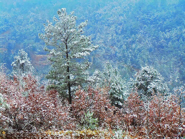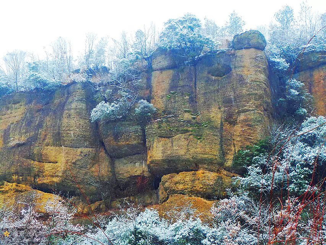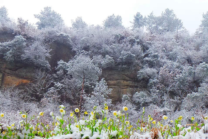 天曌山,虽未千里冰封,但已百里雪飘,你银装素裹,恰是分外妖娆。