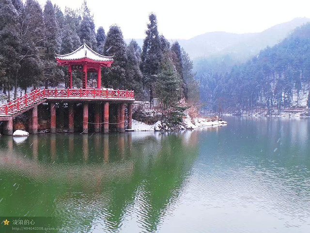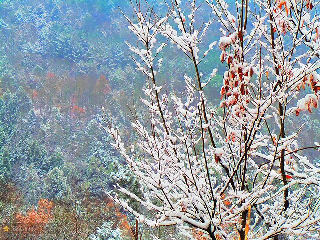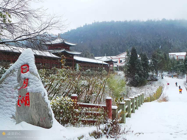 友情提示:正面上山坡陡弯大,路面积雪结冰,开车上山很是危险,未加防滑链的自驾车主切勿犯险上山。建议走陵宝公路往宝轮方向,过白龙江大桥后立即右转,过白龙江旧桥后立即左转,沿湖行进从后面上山,到星曌酒店后再步行进入景区赏雪。安全第一,看雪第二。