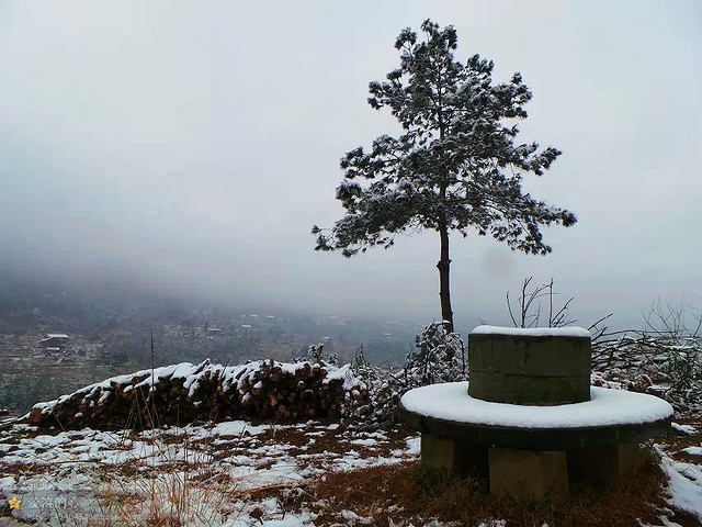 今日刚起床,接天曌山王局长电话,说是天曌山上瑞雪纷飞,煞是美丽冻人,他邀请山人上山看雪去。于是便冒着风雪,不顾山路积雪结冰之危险,与光甫弟驾车就上得山来,在与江南兄汇合后,我三人就踏雪看美景去了。