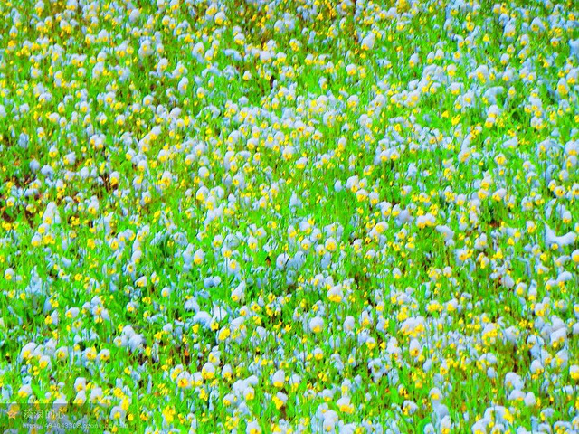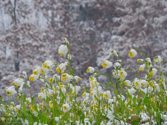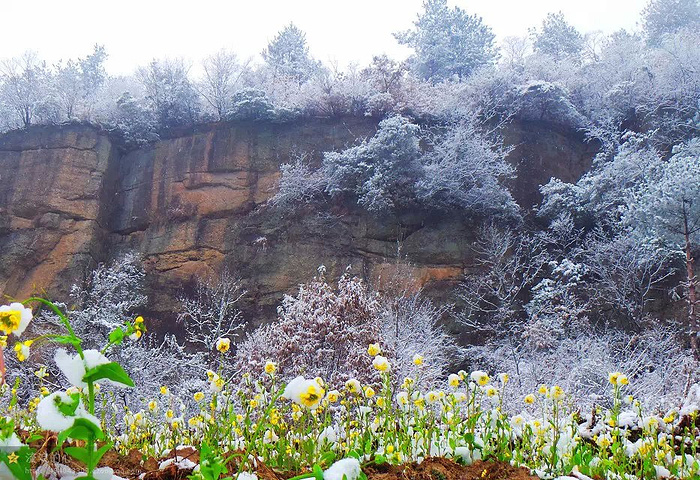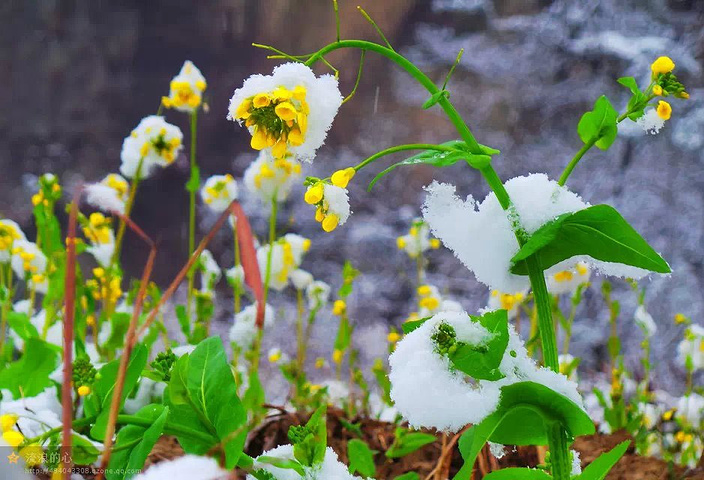 山间的田野已经开出了春天的花朵,这是冬雪还是春雪?