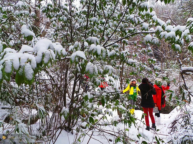 银装素裹的天曌山,寒气逼人,少有游人,不知从哪里来了一群妖精,平添了几抹亮色,增加了几分欢笑。