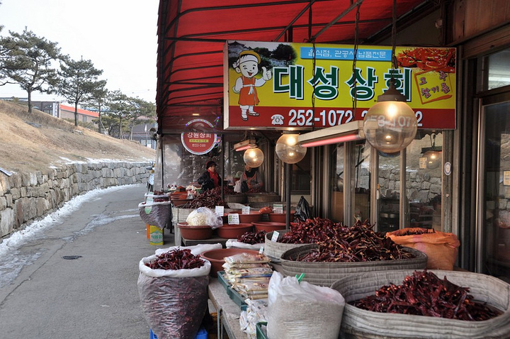 还好我们住的地方坐地铁去水原不算太远,那里真是完全不同于首尔。号称世界文化遗产水原华城也让我们大跌眼镜,不过想想景福宫和故宫比都显寒酸,更何况这一个小小的行宫。还好城墙的风貌保留得很完整,也算不虚此行。