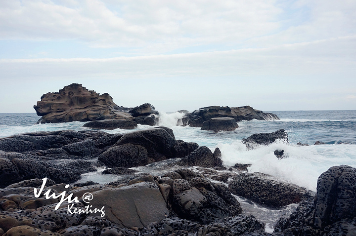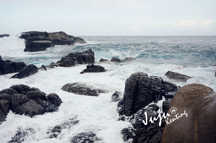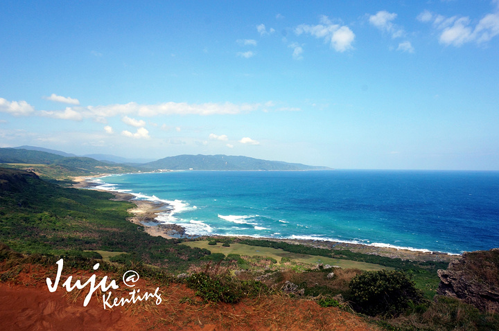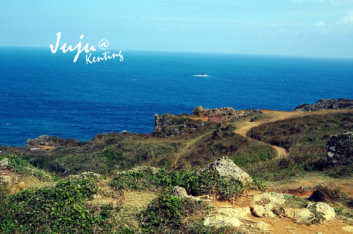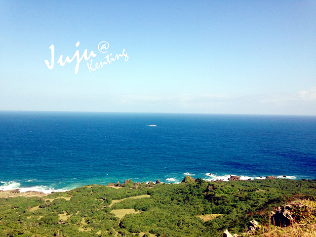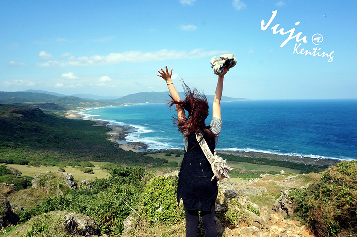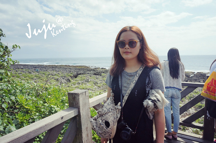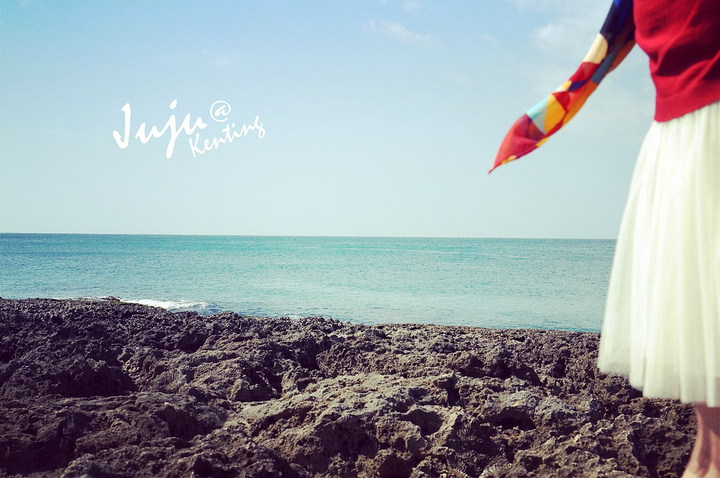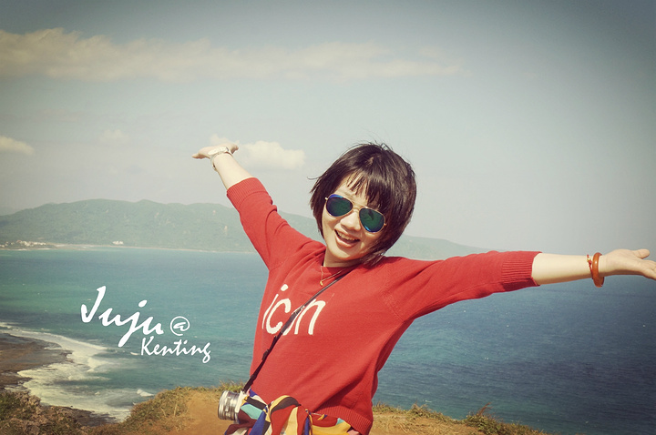 垦丁的第二天,在导游兼司机的带领下,我们打卡似的去了船帆石、砂岛、鹅銮鼻、最南点、龙磐、出火、佳乐水等一众景点。但其中我最最爱的还是龙磐公园,虽然被称为是公园,其实还是非常原始的一个景点,没有被过度的开发,也没有浓重的商业气息。龙磐的美大气,甚至让我觉得美得不像话,站在悬崖边,俯瞰太平洋,海天一色,真的很震撼,这种身临其境的震撼不是照片或者文字所能表达的,我觉得这是垦丁最美的海岸线,没有之一。自己被风吹的像个疯子,却还是久久都不愿意离开,看着一波又一波的旅行团的到来和离开,我是多么的庆幸自己可以决定自己的行程和时间。在龙磐,我的眼里只有蓝天大海,我手舞足蹈像个高兴坏的孩纸,不还念过去,不向往未来,幸福就是现在。