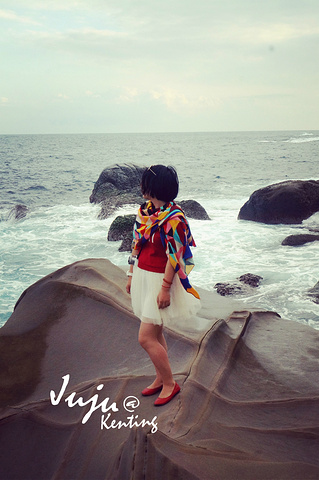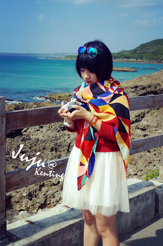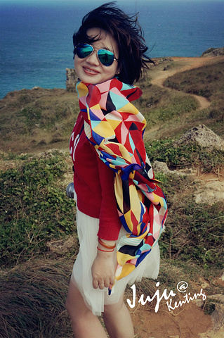 风太大,只有用围巾裹住才不会走光,所以建议季风季节来垦丁的菇凉们,一定不要穿短裙,特别是我这种短的纱裙