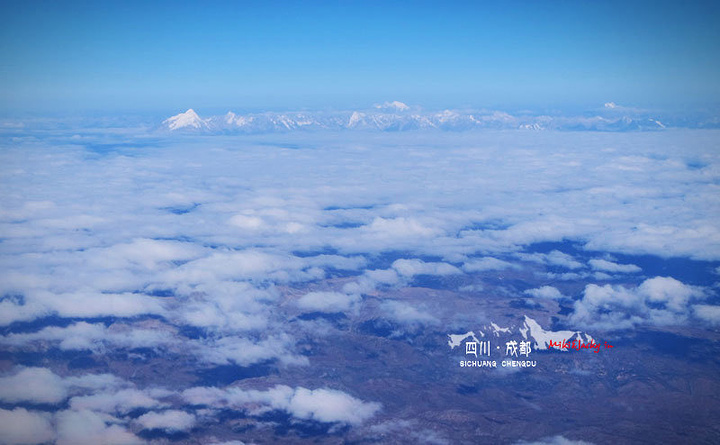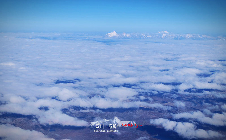 三万英尺上见到的雪山,层层叠叠的云朵映衬在周围