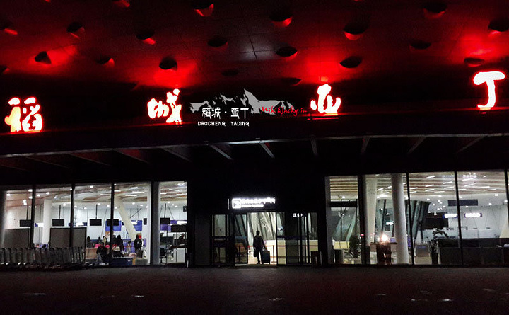 机场跑道长4,200米(13,780英尺),飞行区等级4C,包括4个停机坪,候机楼建筑面积8,796平方米。海拔4,411米(14,472英尺),超过海拔4,334米(14,219英尺)的西藏昌都邦达机场,成为世界上海拔最高的民用机场。已于2012年8月29日竣工,11月23日试航成功。2013年9月16日正式通航,首航是中国国际航空4215号航班,由一架A319型客机搭载着118名旅客来到稻城。预计在2020年旅客吞吐量达到28万人次,货物吞吐量1,400吨