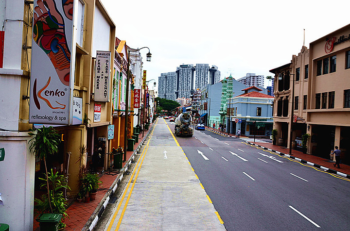 下面这张开始就进入车牛水小印度的区域了,两个挨着一起非常近,全是五颜六色的骑楼和现代化的背景形成对比