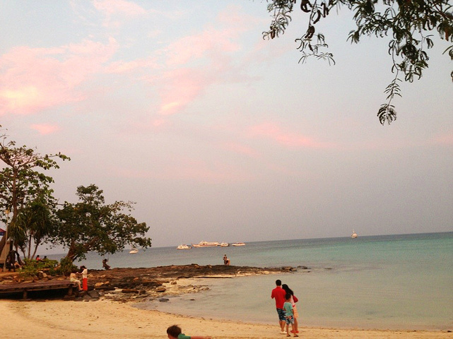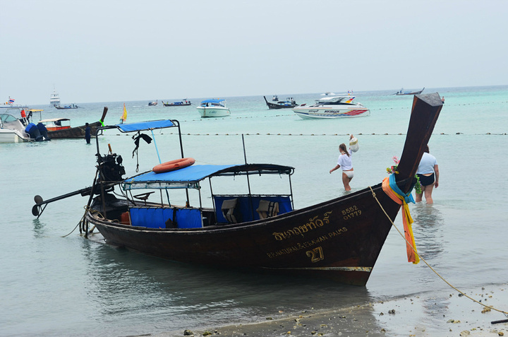 之前有在网上看到说需要自己淌水过去那是针对自己包快艇去的游客,买大船票过去都是固定接送的,酒店船会定期在那边等着,行李和人都不需要淌水上岸的哦,除非你想下去自己淌过去,但是我们第二天确实看到有淌水过来的,他们是自己包快艇过来,因为pp水很浅,无法完全靠岸,所以只能下船淌水过来喽~不过坐船建议妞们穿短裤哦,我就是没脑子滴穿了裙子差点被吹起来走光了~然后我的信用卡就是在船上的时候被盗刷了,整个下午郁闷至极,除了在前台这边上上网,下去海滩拍拍照其他的时间就是在处理追款的事情了~