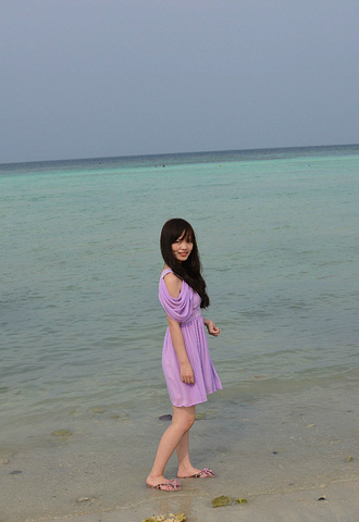 今天天空还是很灰,所以海就没有想象中的蓝了,可是我依然认为pp北部的海是最漂亮的,胜过皇帝岛,照片中有一条明显的分界线,浅蓝色的区域水很浅,走出老远还是到腰部,所以很适合我这种旱鸭子玩水,哈哈~