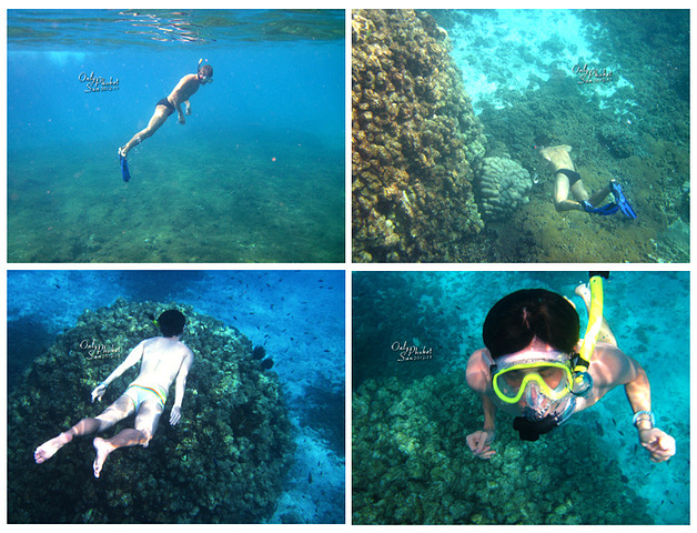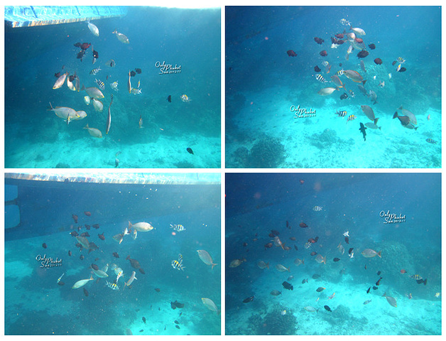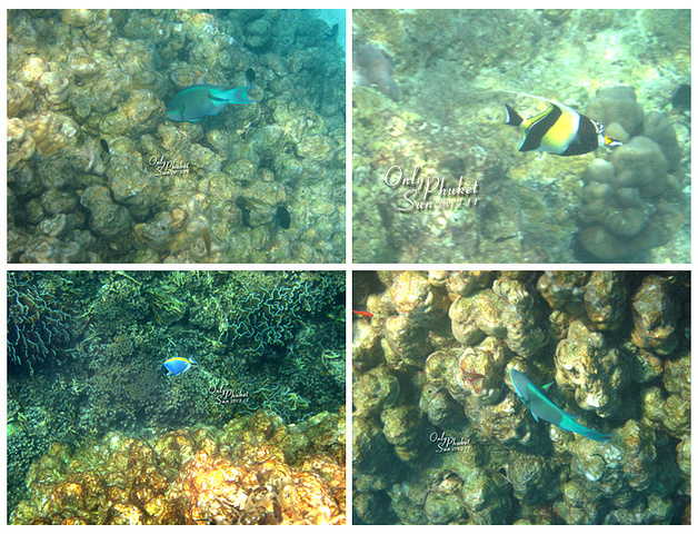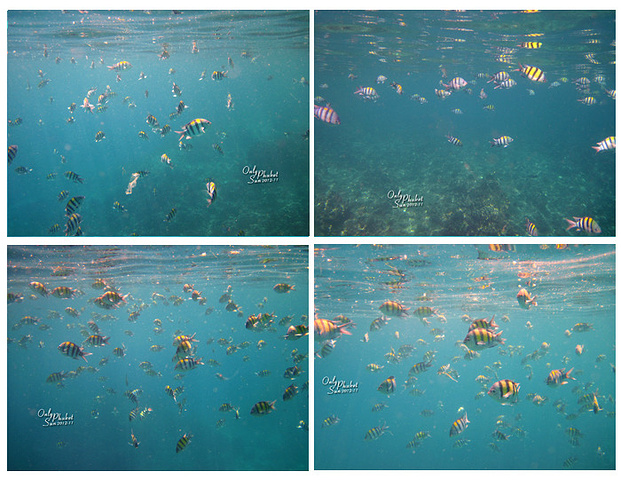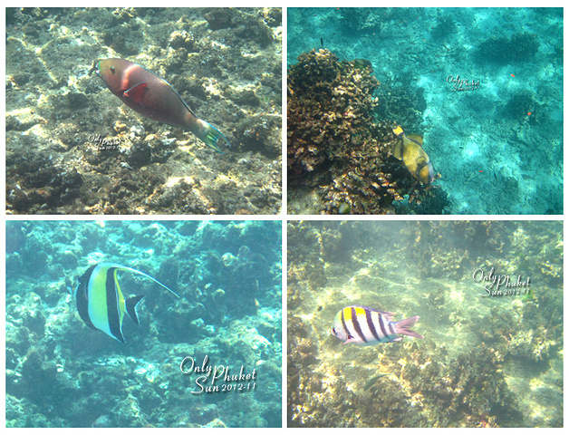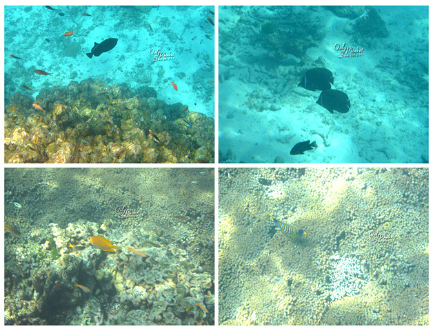 到达下午的浮潜点。跟我们第一天第一个浮潜点是一样的,所以骏爷推断,一日游的两个浮潜点是一样的。经过两天的浮潜,骏爷和东先森一下水直接往岸边潜的地方游,果不其然,能见度,鱼都比在海中央看得清楚、漂亮!