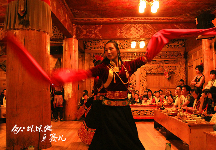 席间的藏族歌舞表演,颇具特色。