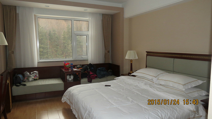 本次入住的是家庭大床房(含早)。房间的面积大约30平米,房间的窗子是朝阳的,可以看到雪场,床品很干净,房间味道并不大,卫生间稍有些味道。房间内提供的两个类似于沙发的塌位。房间内的迷你吧比较简洁,只是提供了两瓶矿泉水,感觉物品有点少(反正我不会消费)。卫生间内的卫浴设施没有品牌名称,确实干净整洁,让我纳闷的是浴室的防滑垫是铺在地板上的。热水是5秒速热的。另外房间内插座不适合苹果手机充电,使人感到些许不便。